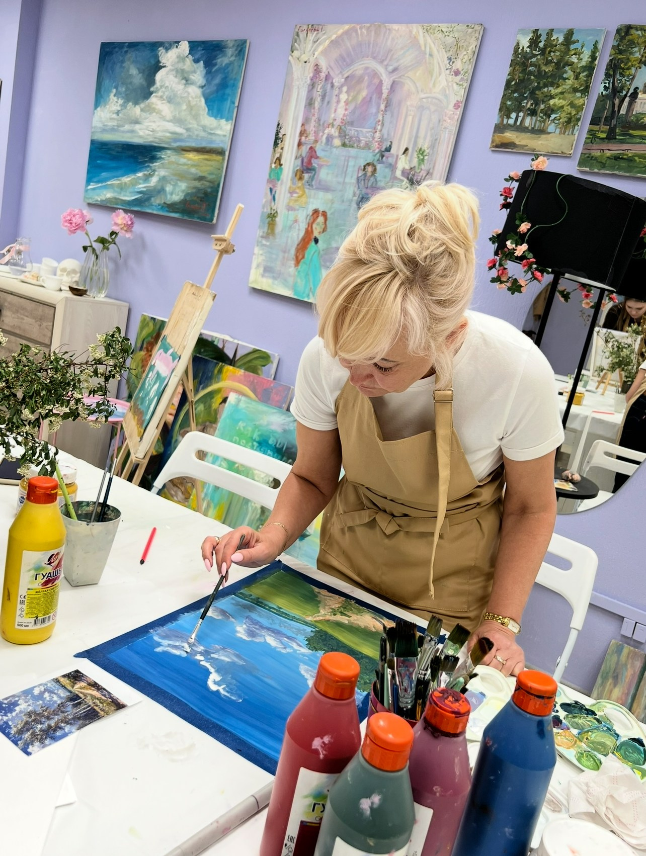 Занятия проходят два раза в неделю, и за это время у вас появится уверенность в своих силах, новые навыки и даже новые друзья-единомышленницы. А еще у нас есть пленэры — возможность поработать на природе и почувствовать себя настоящим художником в гармонии с окружающим миром.