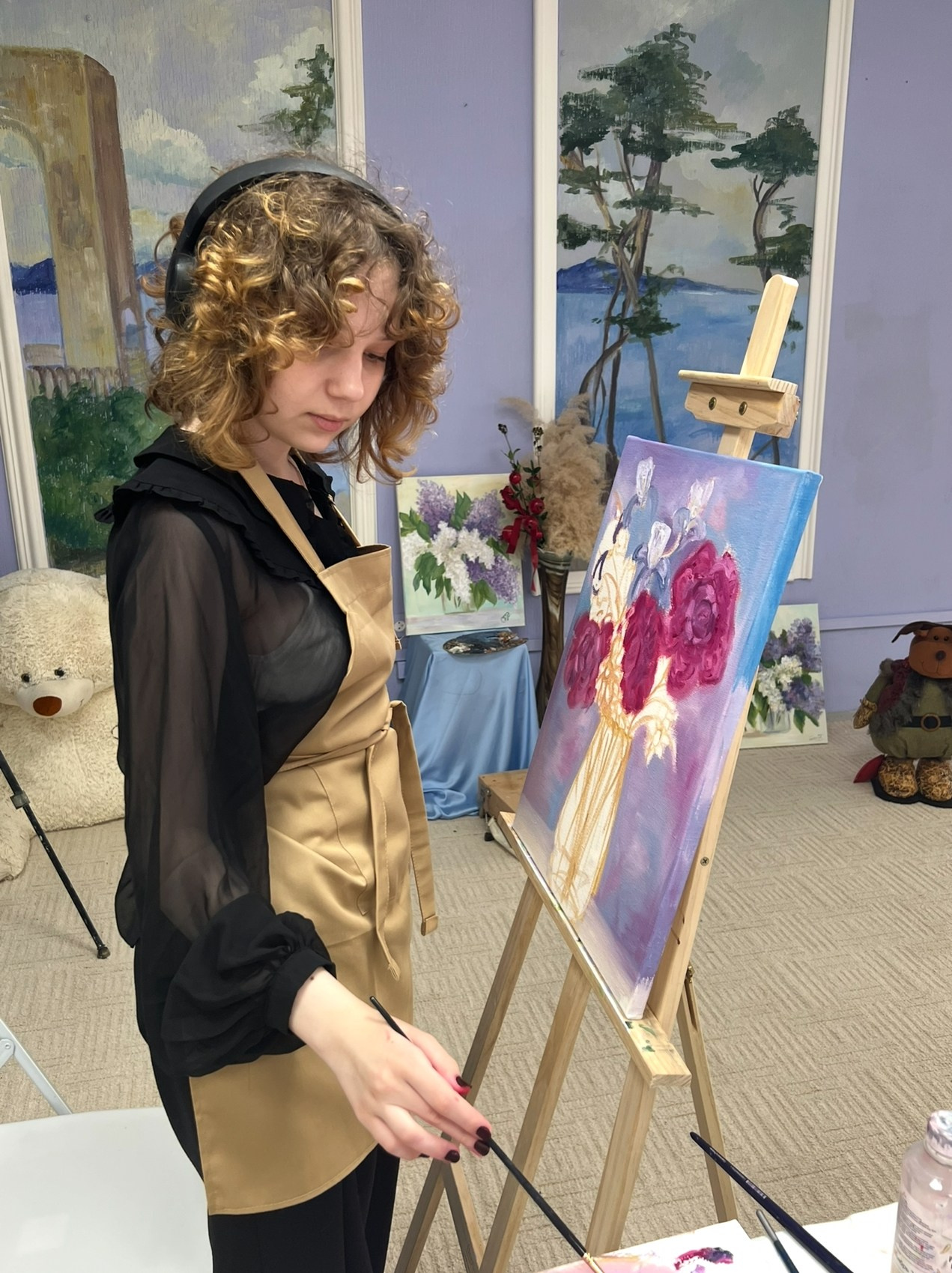 Это место, где ваши мечты о живописи станут реальностью. Мы создали особую атмосферу — дружелюбную, вдохновляющую и поддерживающую — чтобы каждый мог раскрыть свой творческий потенциал. Здесь собираются такие же взрослые, как вы: те, кто давно хотел научиться рисовать или просто мечтает попробовать что-то новое и интересное.